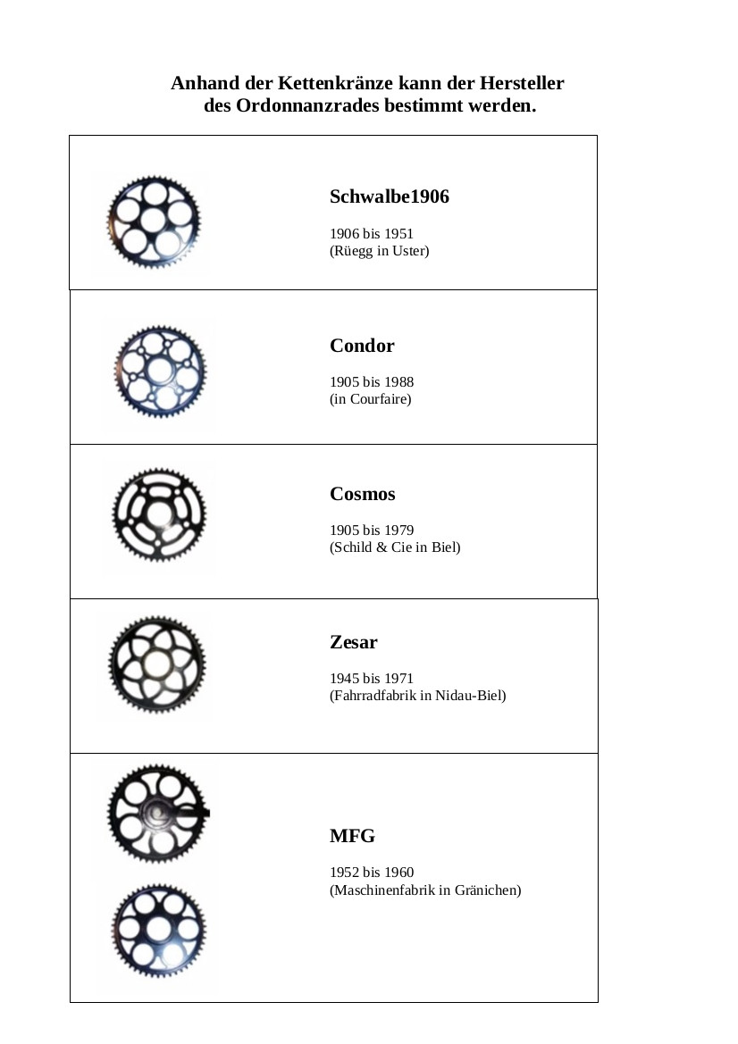 Anhand der Kettenkränze kann der Hersteller des Ordonnanzrades bestimmt werden.